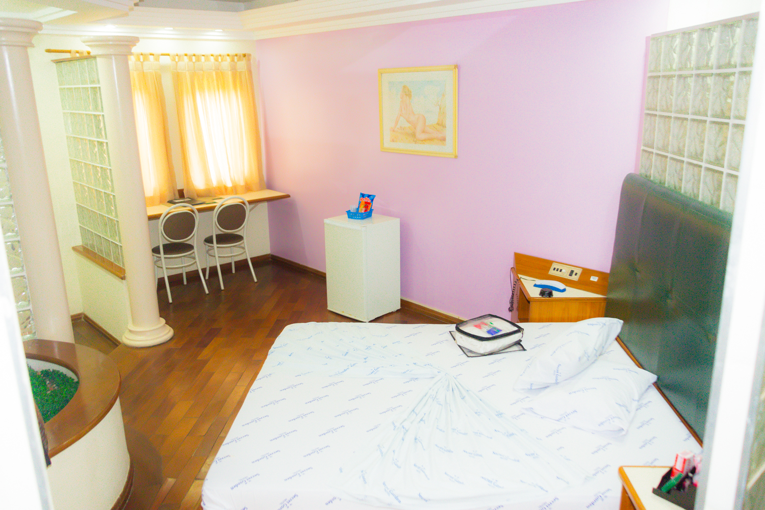 Suíte finamente decorada, com frigobar, chuveiro, banheira hidromassagem, secador de cabelo, ar condicionado, TV LED, 2 canais privê, garagem. Conheça nosso delicioso cardápio